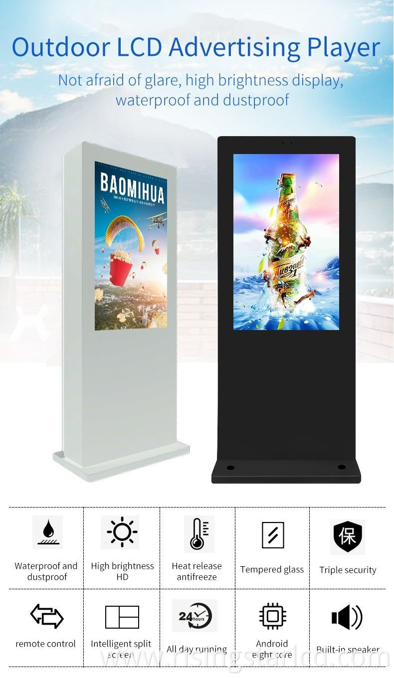 55 inch floor free standing high brightness 2500nits Outdoor Lcd advertising display Digital Signage
