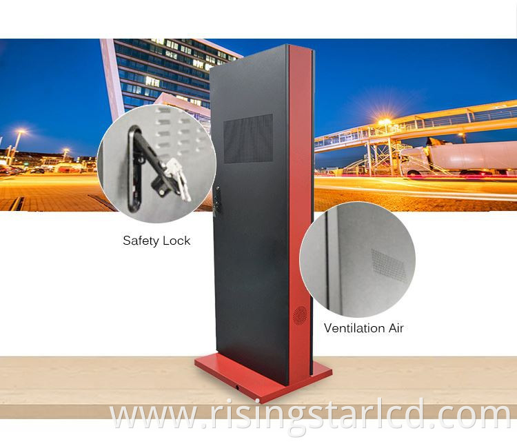 This kiosk is designed to withstand harsh outdoor environments and comes equipped with features such as weather resistance, anti-glare technology, and high brightness levels that can adapt to changing lighting conditions.