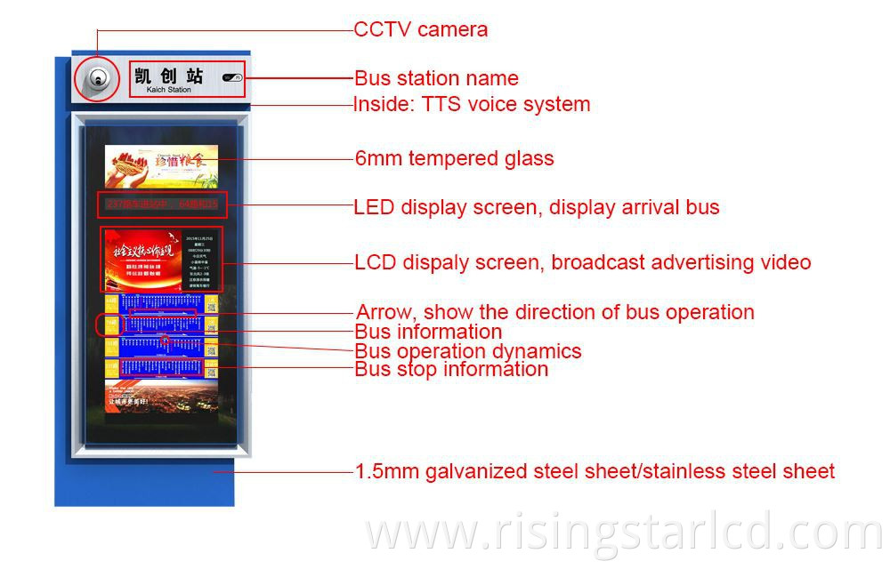 Product Name | Customized smart solar bus stop LCD LED screen bus stop shelter with electronic stop sign | Frame | Galvanized steel sheet |