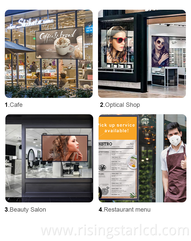 2500 nits digital shop window displays adopt full aluminum alloy design.esaily to installed.With wide view angle and clearly picture esay to captivates customer .
