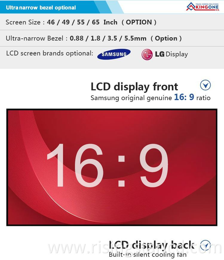 LCD screen Size: | 46"/49"/55"/65" optional |